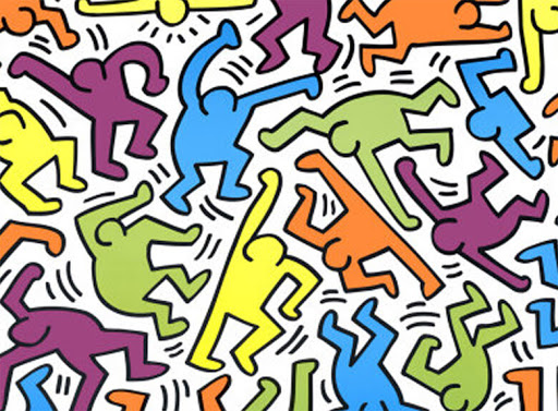 I corpi snodati e teatrali nelle pose sono incredibilmente vicini ai pittogrammi di Haring che vibrano al ritmo di musica pop e dance. Con la differenza che mentre i personaggi di Milwaukee sono fatti per essere colti nella loro dinamicità dal punto di vista dell’automobilista in movimento sull’autostrada, e quindi come sequenza animata, quelli di Hokusai sono dei piccoli capolavori in cui perdersi nel dettagli, da godere lentamente esplorandoli uno ad uno.